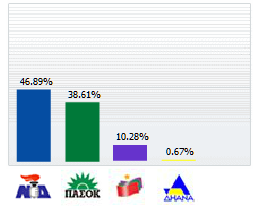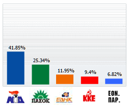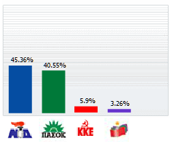 Νίκη της ΝΔ χωρίς όμως κοινοβουλευτική πλειοψηφία